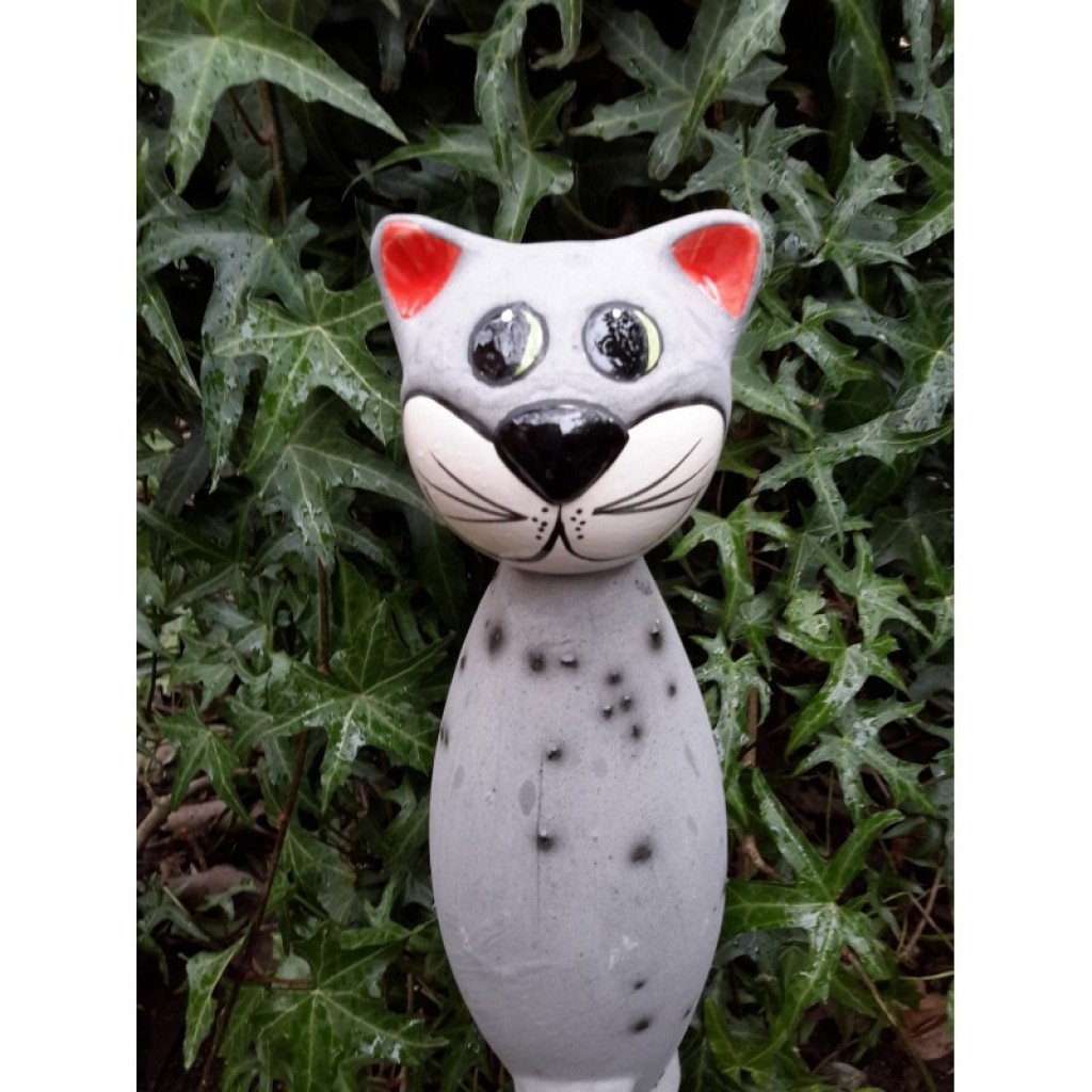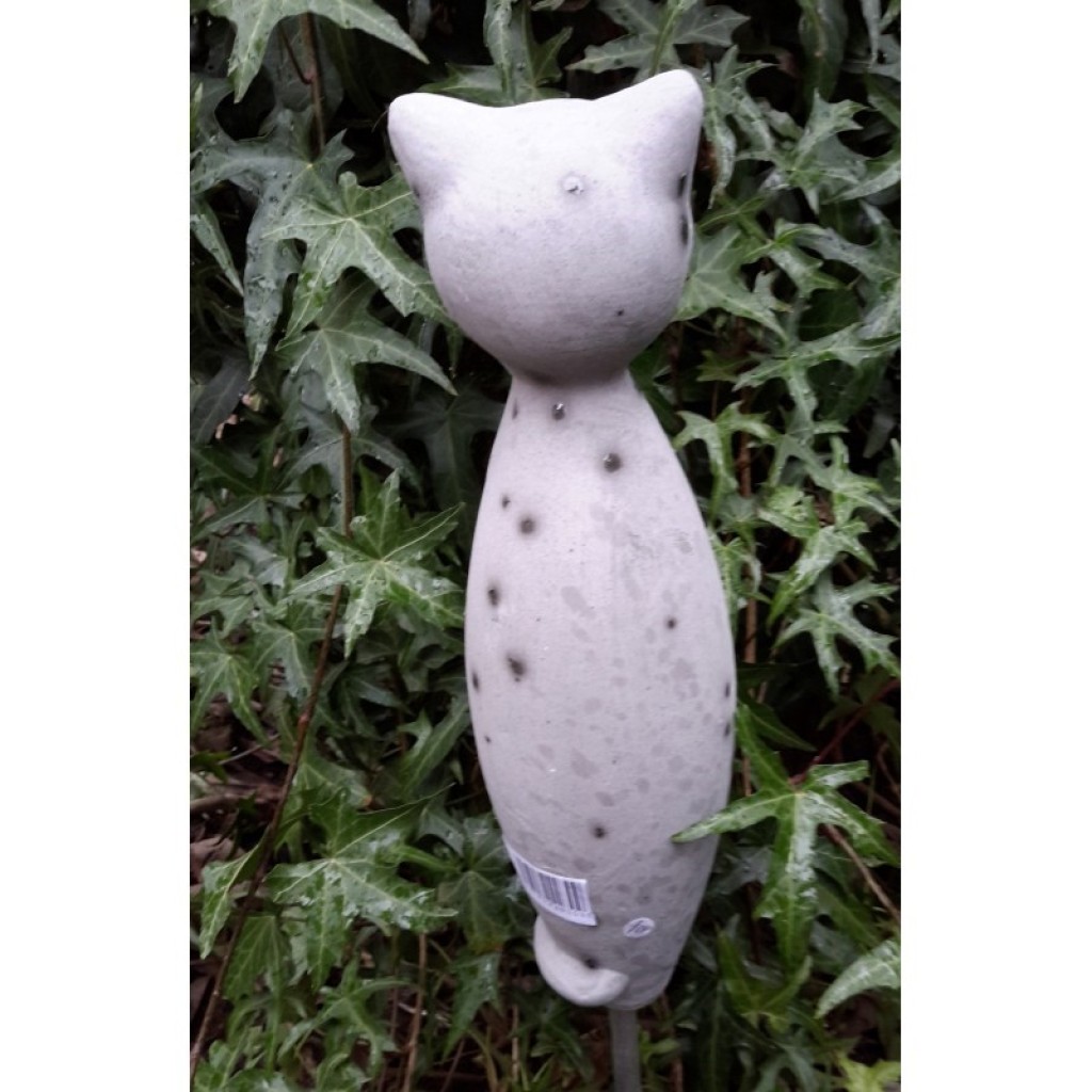 Gartenstecker Keramik Katze schwarz weiße Effekte