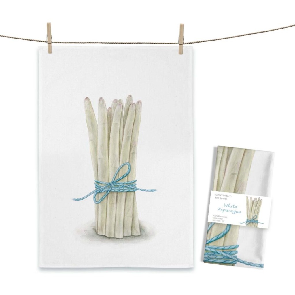 Geschirrtuch MALUU "White Asparagus", Spargel, Aquarell-Design, OEKO-TEX® zertifiziert