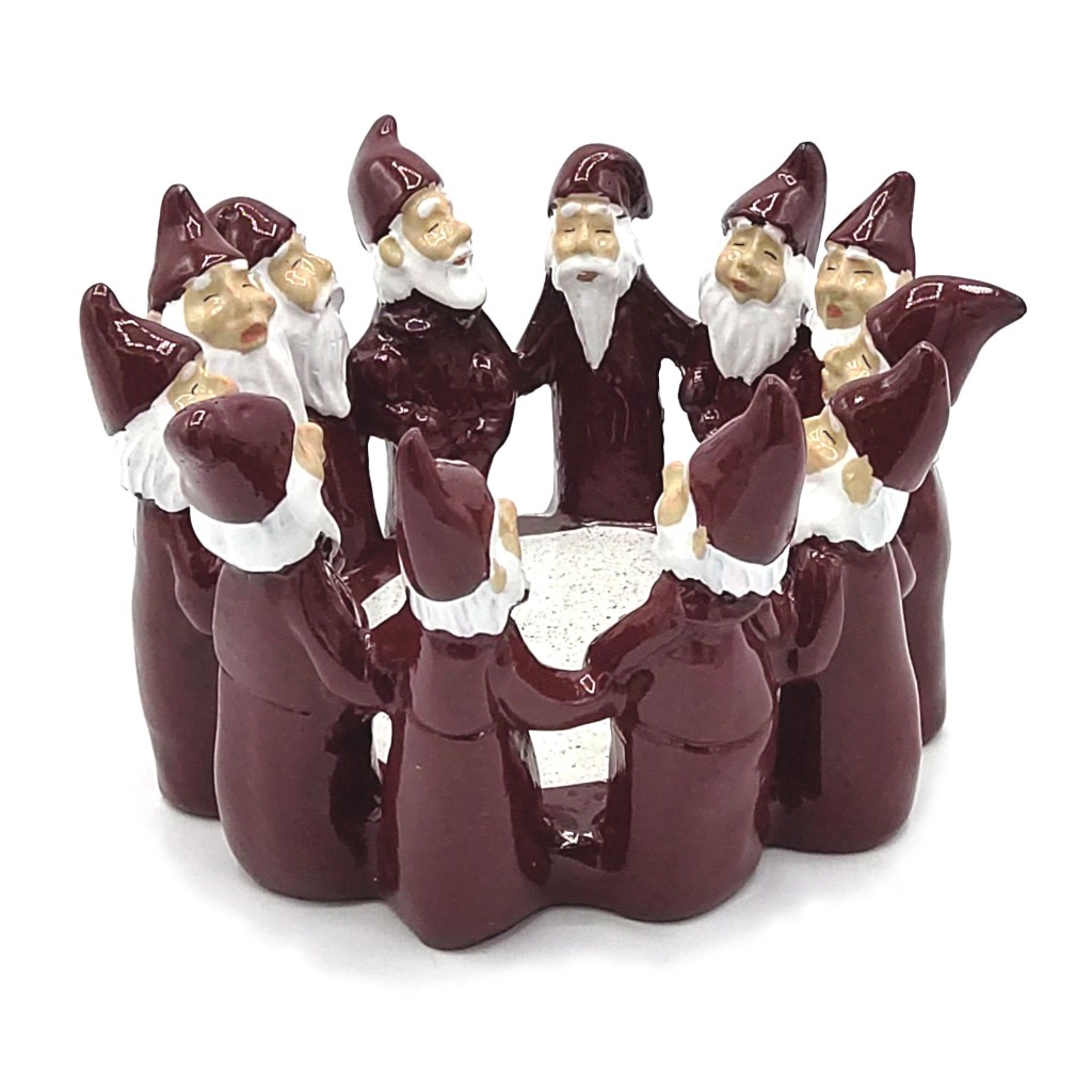 Harvesttime Teelichthalter mit tanzenden Weihnachtsmänner rot 7cm