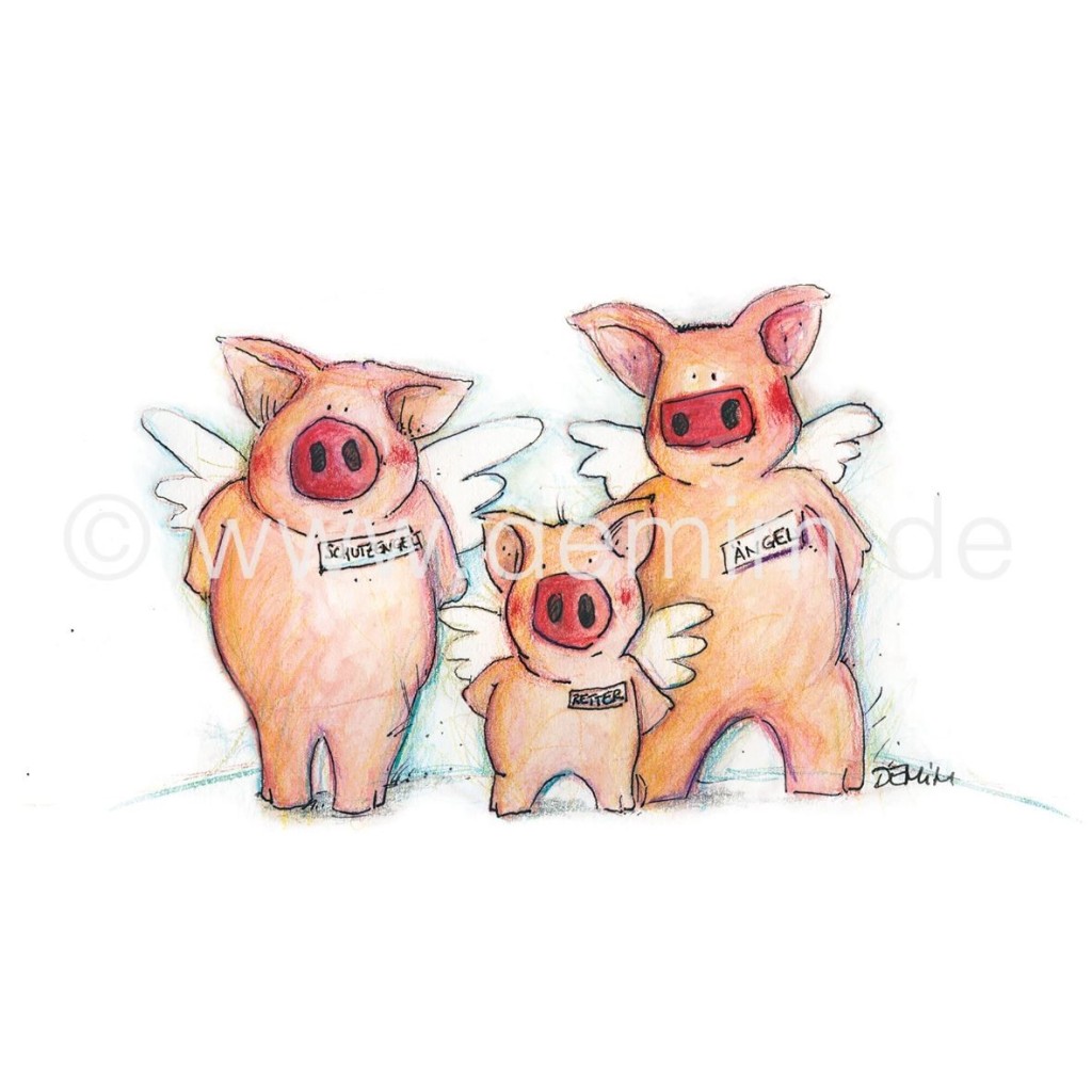 Postkarte Miriam Kramer Schweine Viel Glück