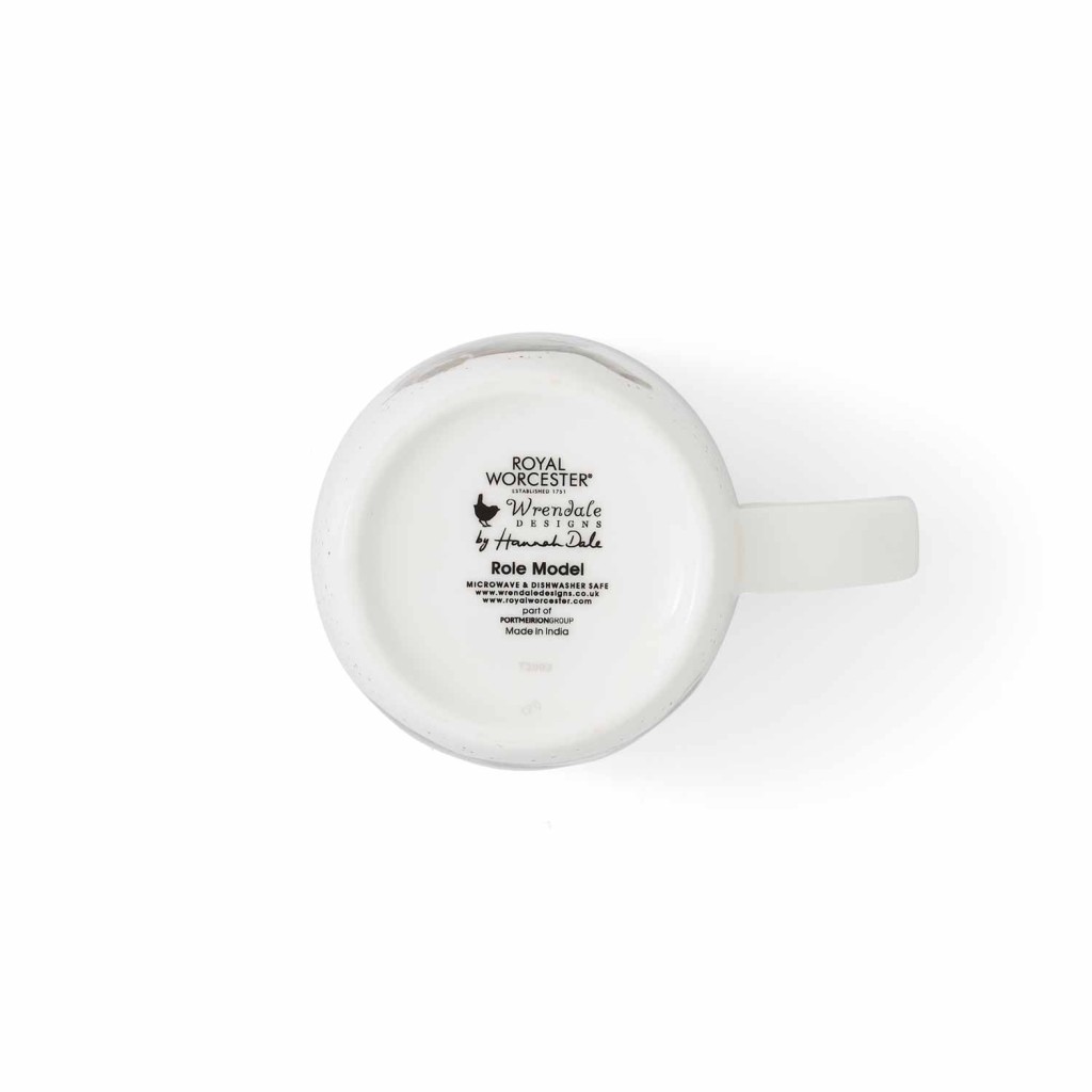 Auf der Vorder- und Rückseite der Tasse ist ein fröhlicher Elefant in spielerischer Pose zu sehen, während sich auf der Innenseite ein weiteres Motiv des kleinen Dickhäuters verbirgt – ein charmantes Detail, das den Becher zu einem echten Hingucker macht. Zarte Sprenkel verzieren die Oberfläche, und auf der Unterseite befindet sich der offizielle Royal Worcester & Wrendale Designs Stempel sowie der Titel der Tasse.